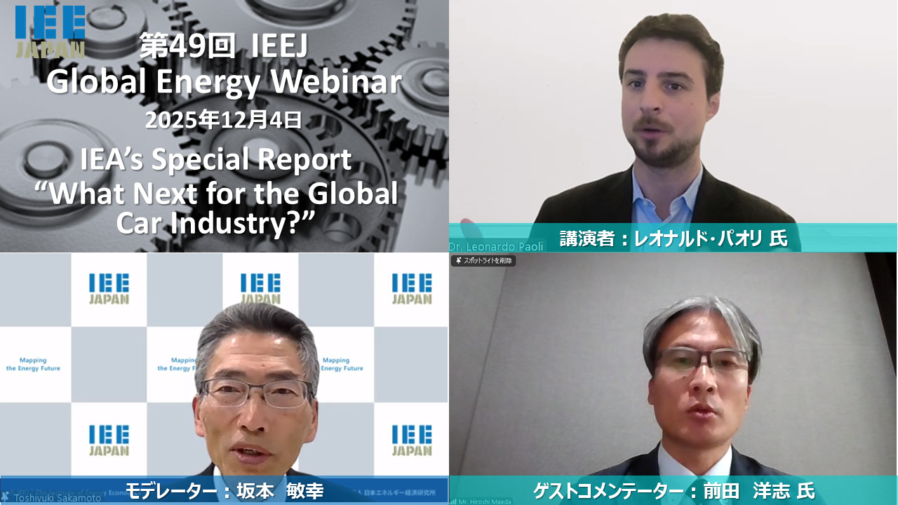報告:土井 菜保子 (IEEJ) モデレーター:坂本 敏幸 (IEEJ) 第20回 IEEJ Webinar for the worldの動画になります。(2025.12.10)