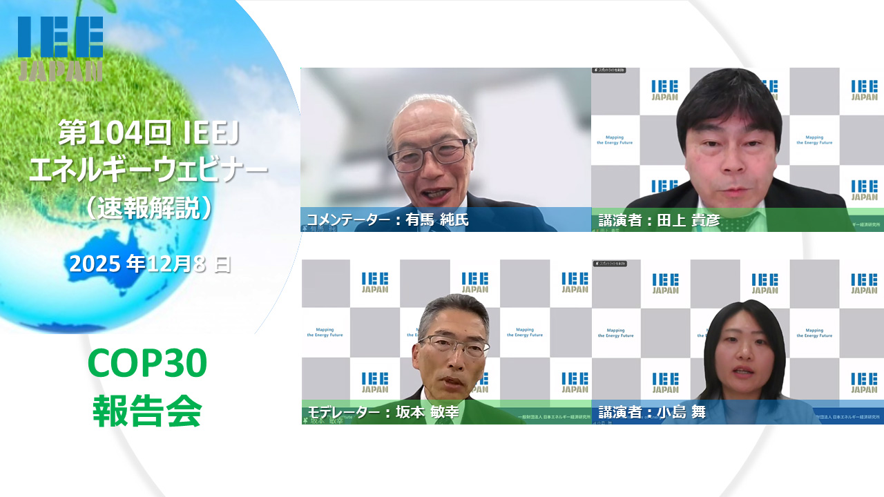 報告:田上 貴彦、小島 舞 (IEEJ) コメント:有馬 純氏(JOGMEC特別参与/GraSPP) 第104回 IEEJエネルギーウェビナーの動画になります。(2025.12.8)