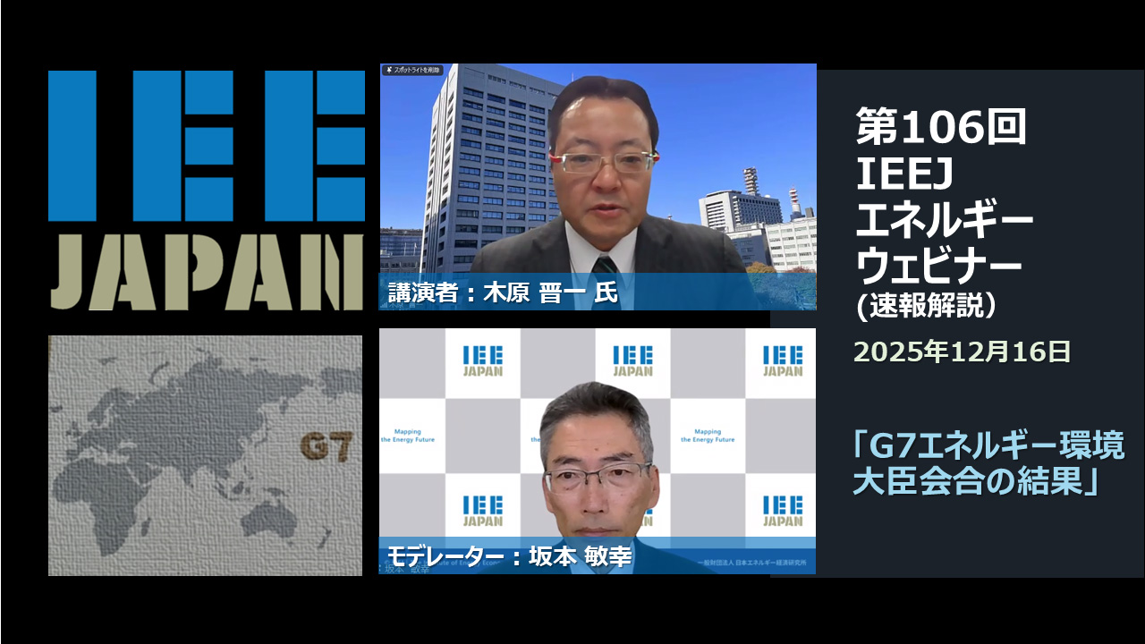 報告:木原 晋一 氏(METI) 第106回 IEEJエネルギーウェビナーの動画になります。(2025.12.16)