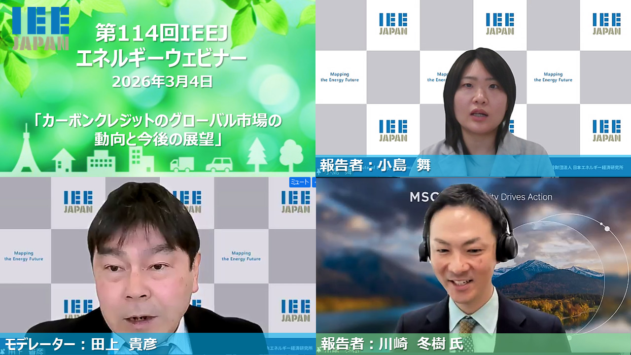 執筆者 小島 舞(IEEJ)、川崎 冬樹 氏(APAC) 第114回 IEEJエネルギーウェビナーの動画になります。(2026.3.4開催)